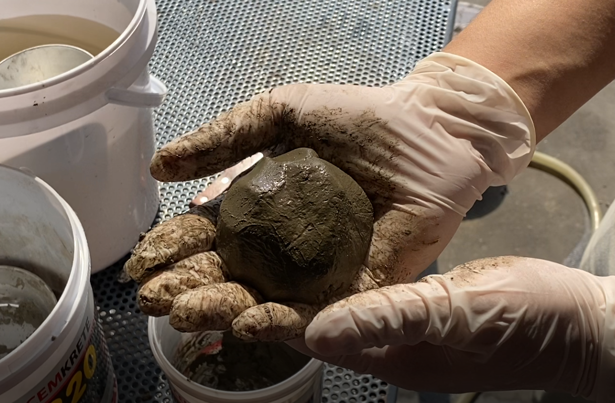 3. ปั้นปูนปลั๊กที่ผสมแล้วให้เป็นก้อนกลม ๆ
