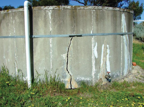 ถังเก็บน้ำคอนกรีตเมื่อมีอายุการใช้งานเป็นเวลานาน อาจมีการรั่วเกิดขึ้นได้ หรือมีรูที่ทำให้เกิดน้ำไหลไม่หยุด หากไม่รีบแก้ไขปล่อยให้น้ำรั่วไปนานๆ รอยรั่วจะขยายใหญ่ขึ้น และตรงรอยที่มีน้ำรั่วไหลจะมีคราบตะไคร่ที่หนามาก หากปล่อยทิ้งไว้เป็นเวลานานถังเก็บน้ำอาจจะพังหรือถล่มลงมาได้ ควรรีบทำการแก้ไขซ่อมแซมให้เร็วที่สุด ปัญหาจะได้ไม่บานปลาย