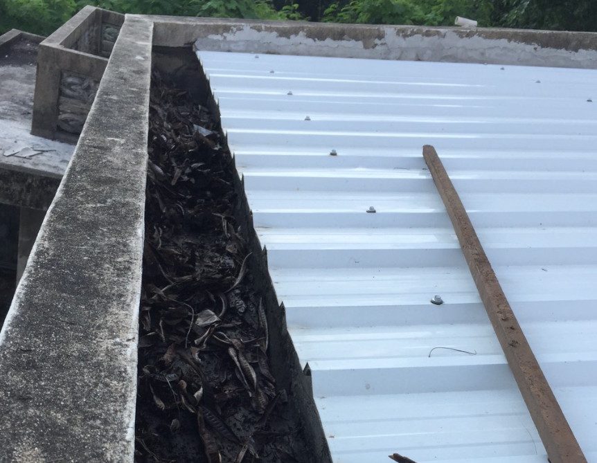 สาเหตุนี้เกิดขึ้นได้ง่ายที่สุด และแก้ไขได้ง่ายที่สุด แต่เราก็มักจะปล่อยผ่านมากที่สุด ดังนั้นจึงควรหมั่นขึ้นไปตรวจสอบดาดฟ้าอย่าให้มีเศษใบไม้กิ่งไม้ทับถมช่องระบายน้ำเพื่อป้องกันการเกิดน้ำท่วมขังบนดาดฟ้า หากปล่อยทิ้งไว้เป็นเวลานานอาจจะทำให้เกิดน้ำซึมบนดาดฟ้าได้