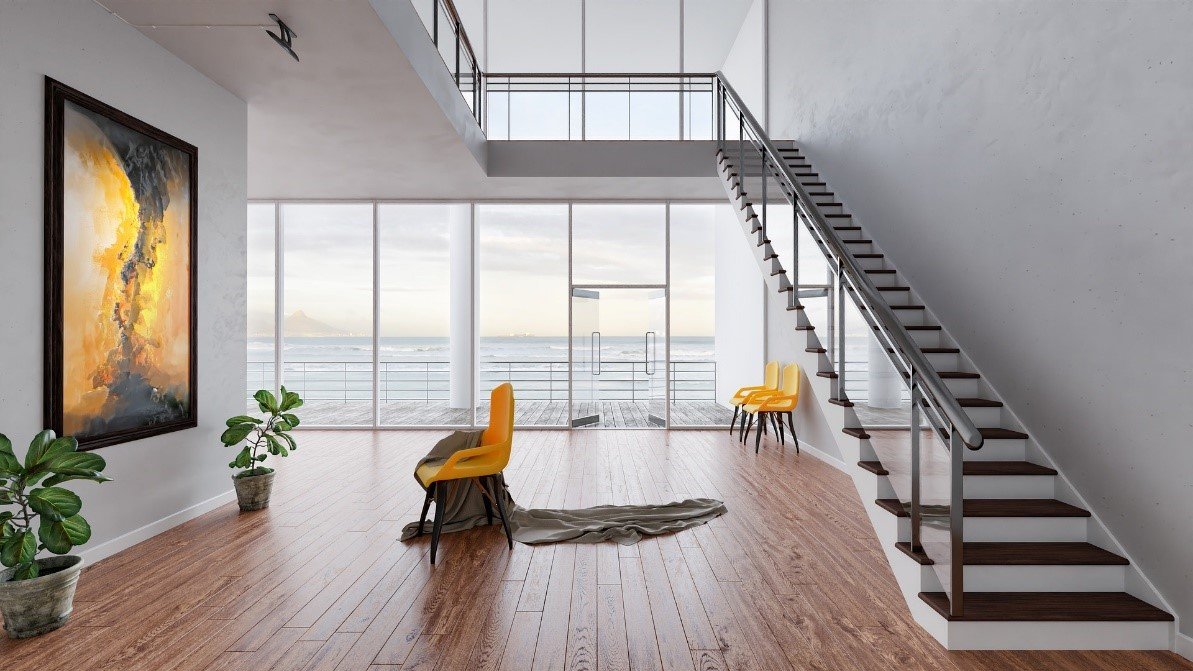 กระจกบานใหญ่ หลายบาน ขอบขาวดูมีความทันสมัย สวยงาม มองเห็นวิวแบบพาโนรม่า มองเห็นวิวภายนอกได้อย่างชัดเจน และยังทำให้บ้านดูกว้าง สว่างและโปร่ง มากขึ้นอีกด้วย